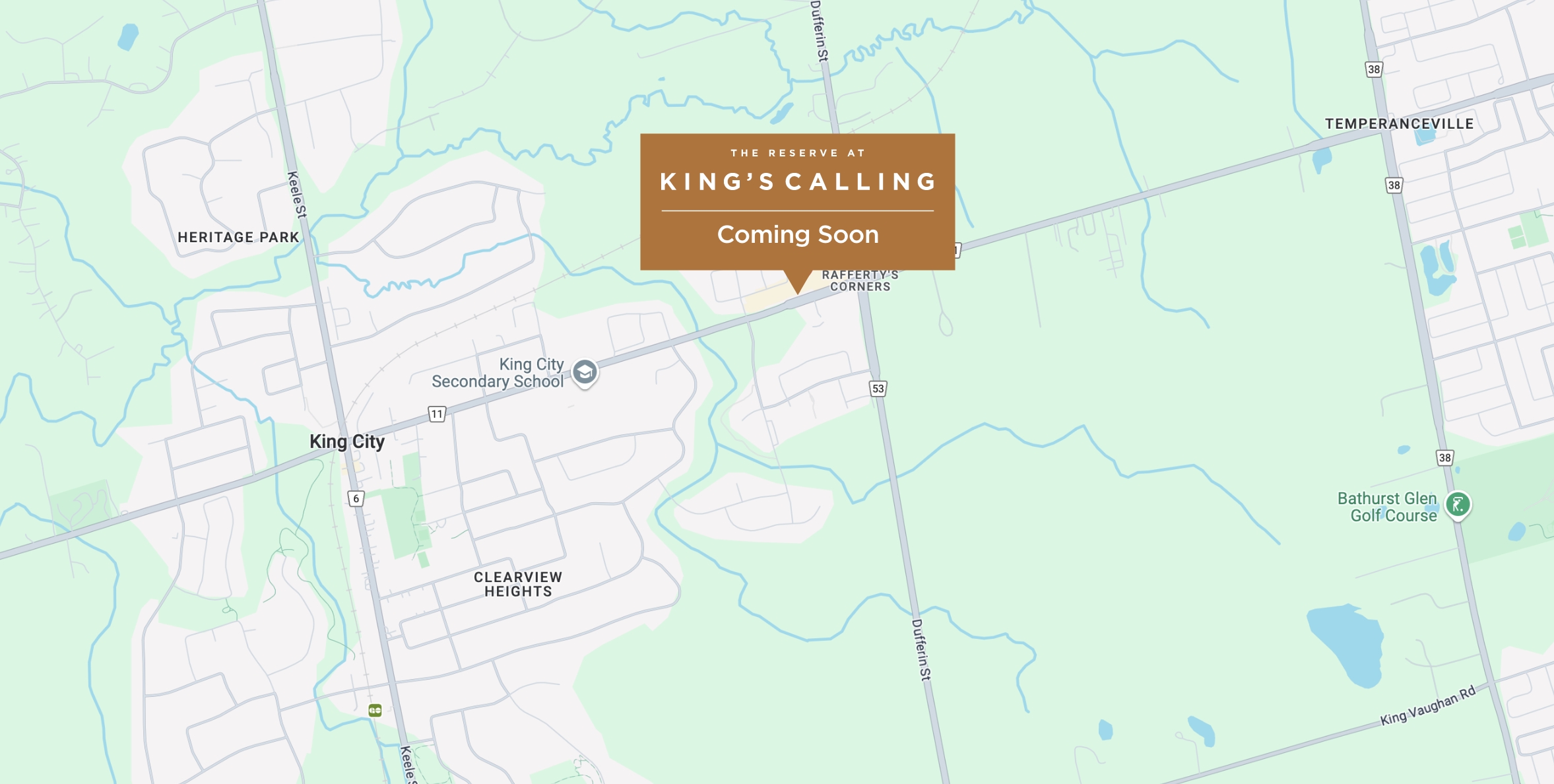 Storied streets and modern amenities, rich natural beauty and exciting urban experiences: King City is the stage for contemporary living. Experience a diverse range of cuisine, charming boutiques, top schools and expansive golf courses. Stay connected with Hwys 400 and 404, and the King City GO Station, minutes away.